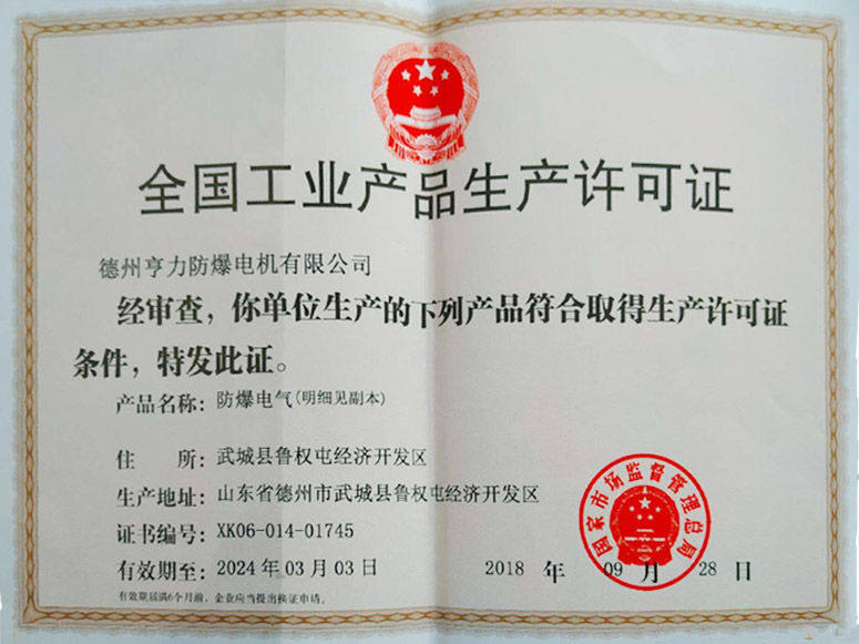 德州亨力防爆电机有限公司资质